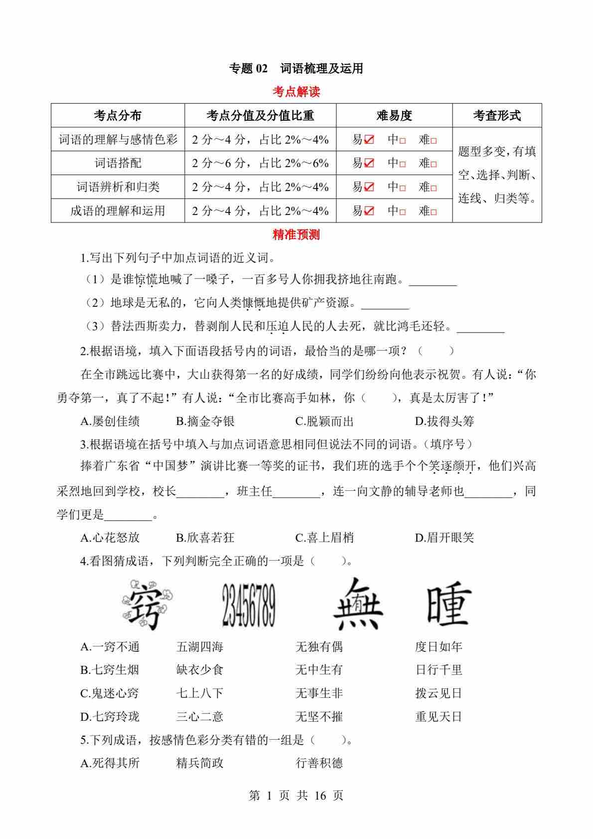 专题02 词语梳理及运用
