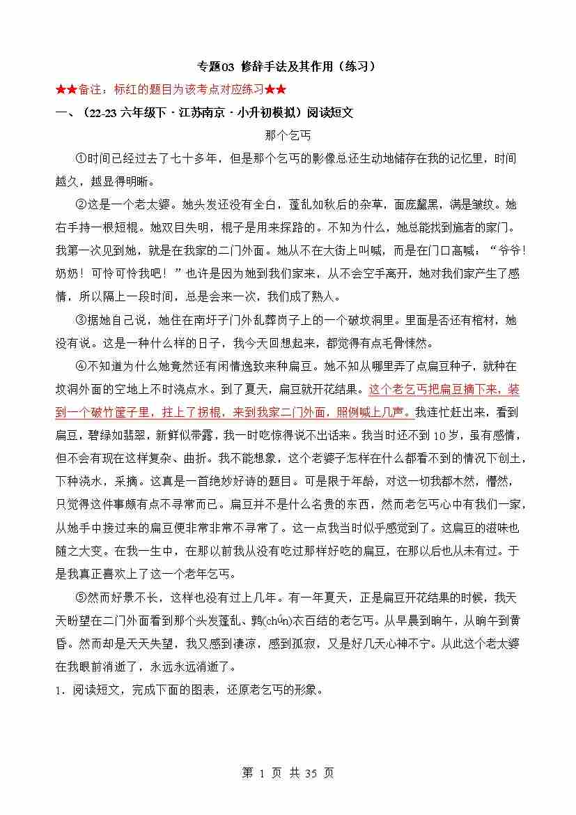 专题03 修辞手法及其作用(练习)