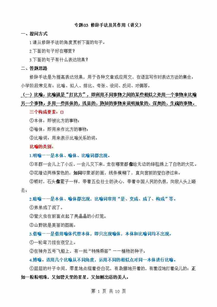 专题03 修辞手法及其作用(讲义)