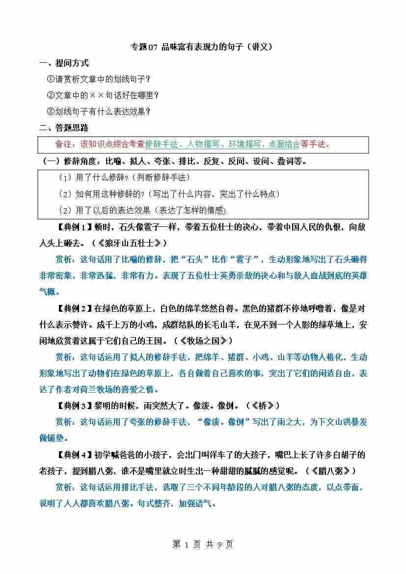 专题07 品味富有表现力的句子(讲义)