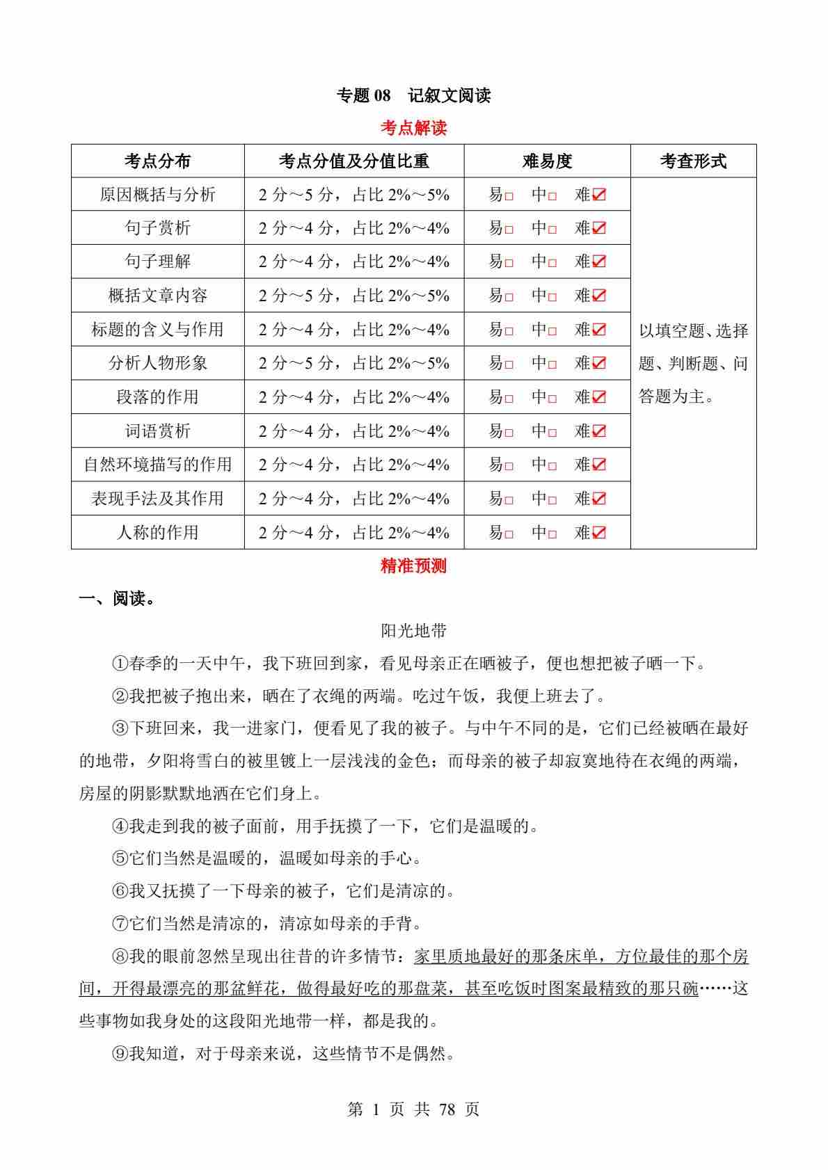 专题08 记叙文阅读