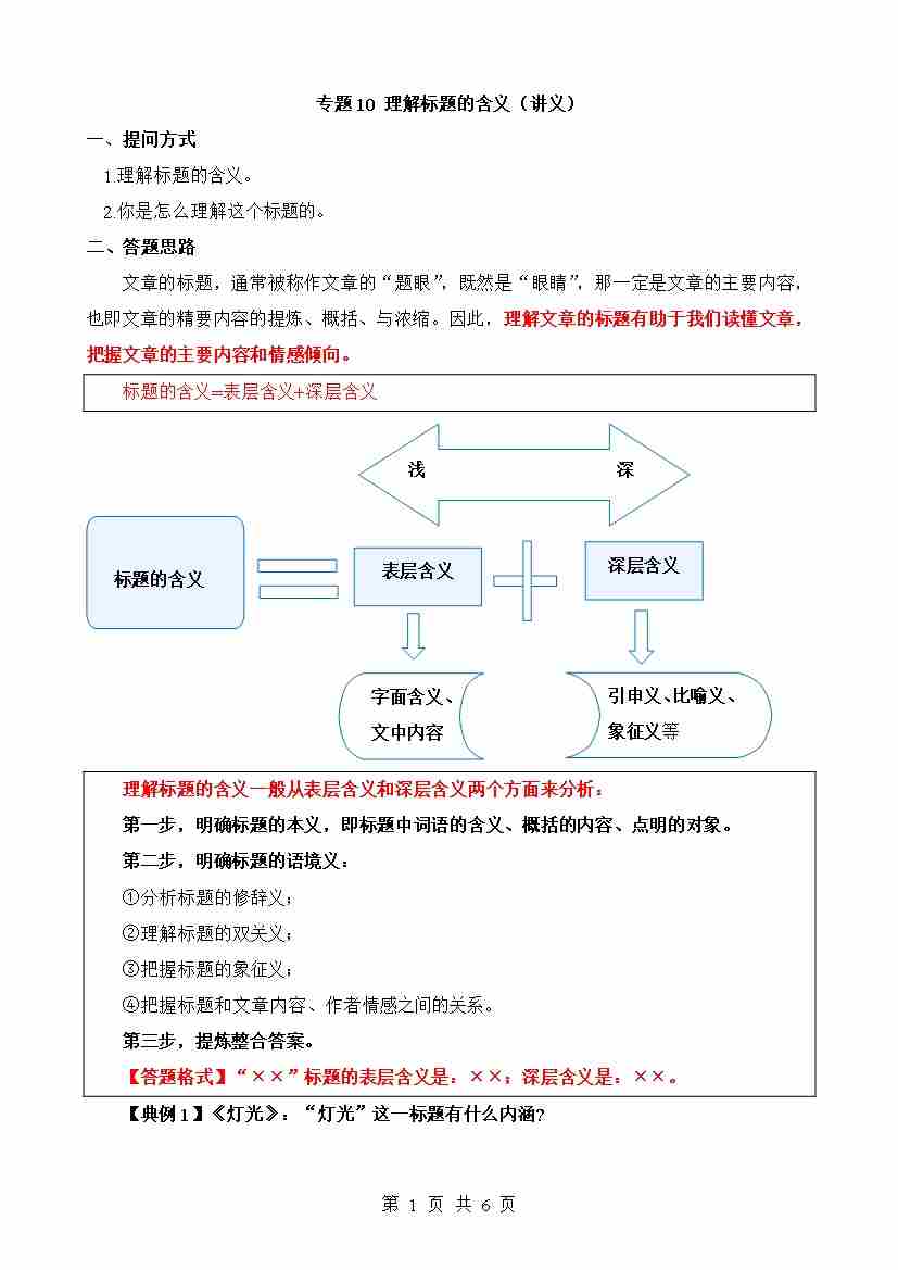 专题10 理解标题的含义(讲义)