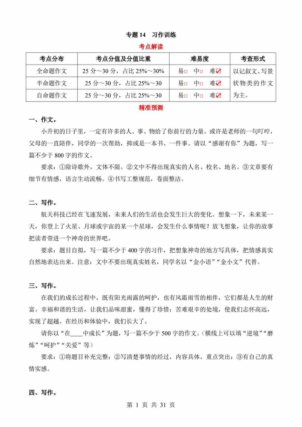 专题14 写作训练
