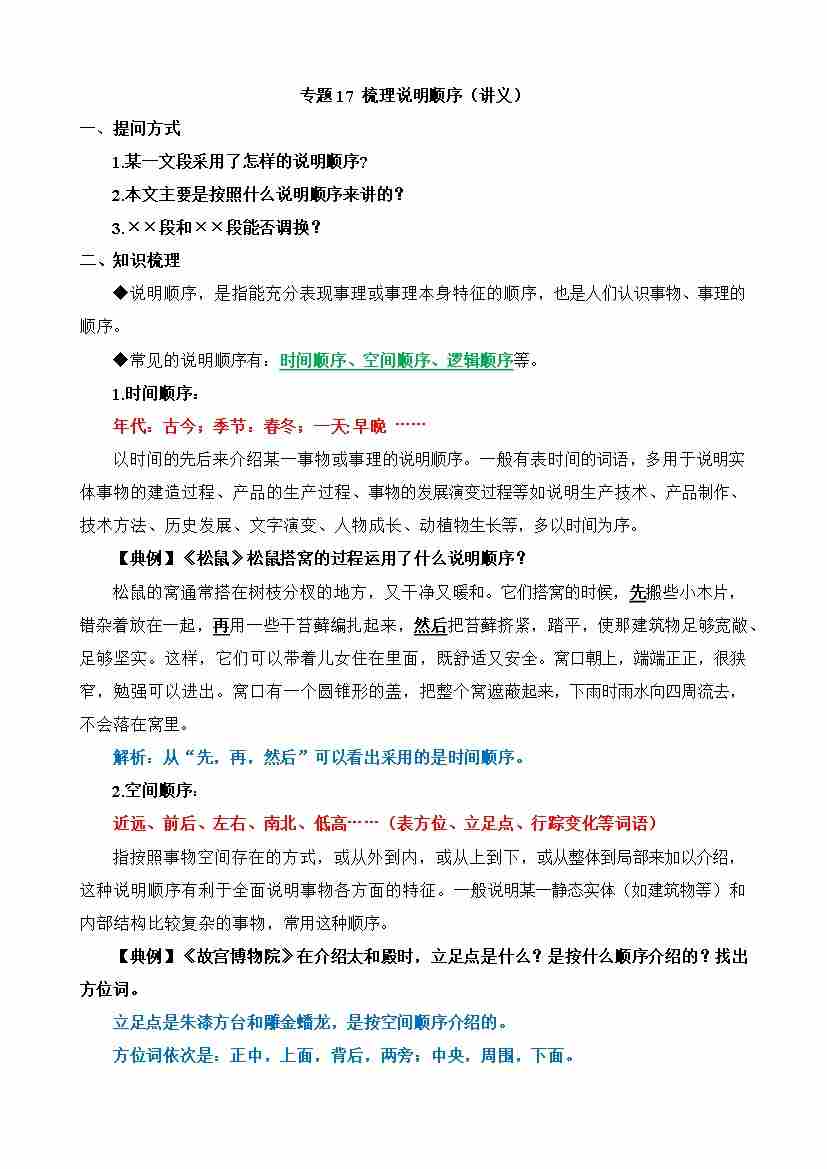 专题17 梳理说明顺序(讲义)