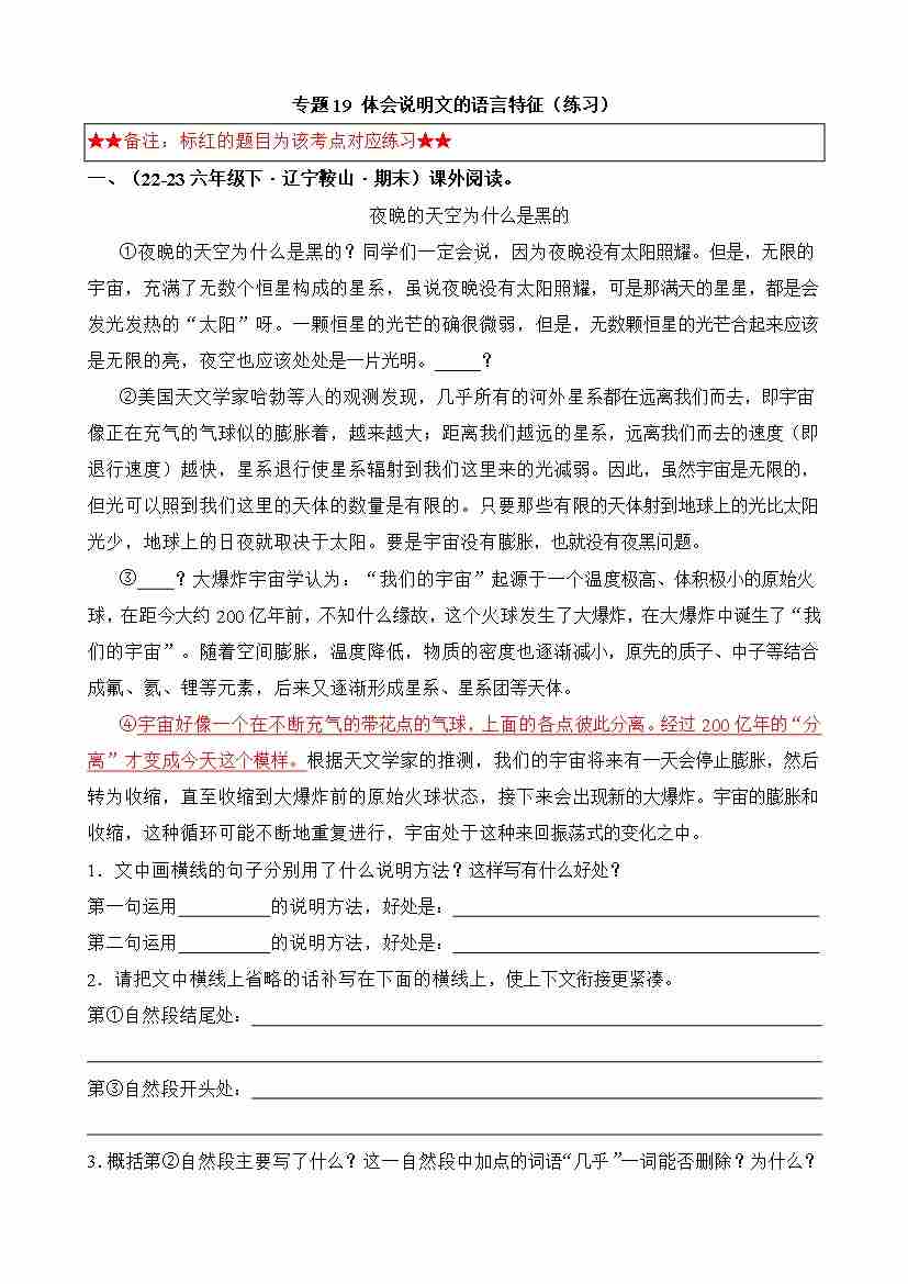 专题19 体会说明文的语言特征(练习)