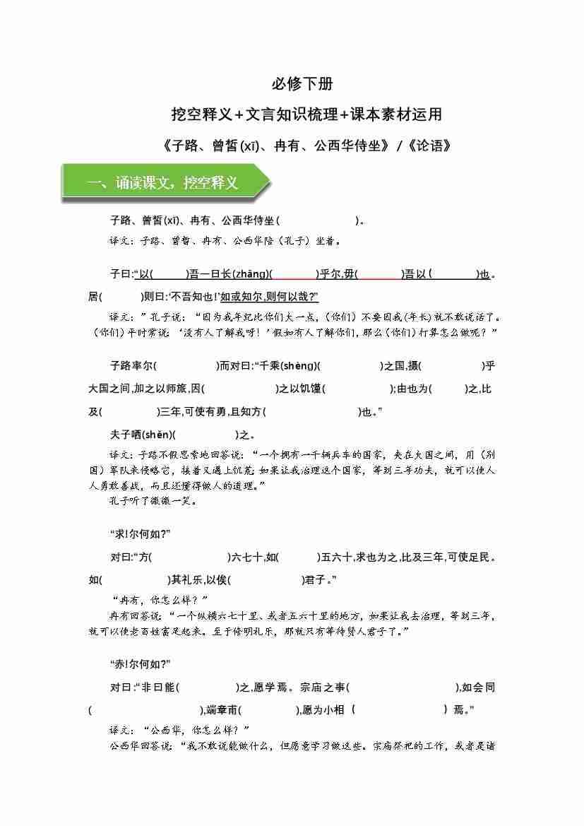 《侍坐》文言知识梳理与写作取材(教师版)-12页