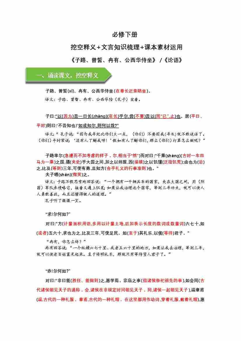 《侍坐》文言知识梳理与写作取材(学生版)-12页