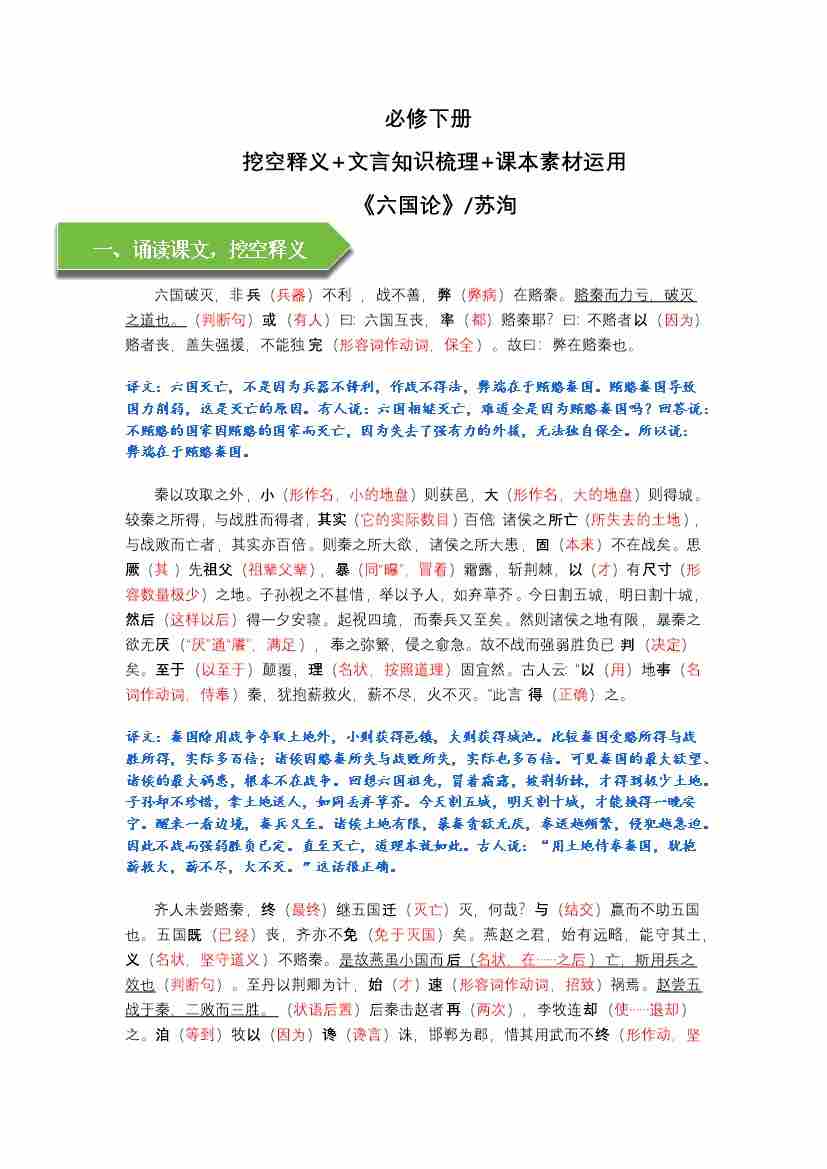 《六国论》文言知识梳理与写作取材(教师版)-10页