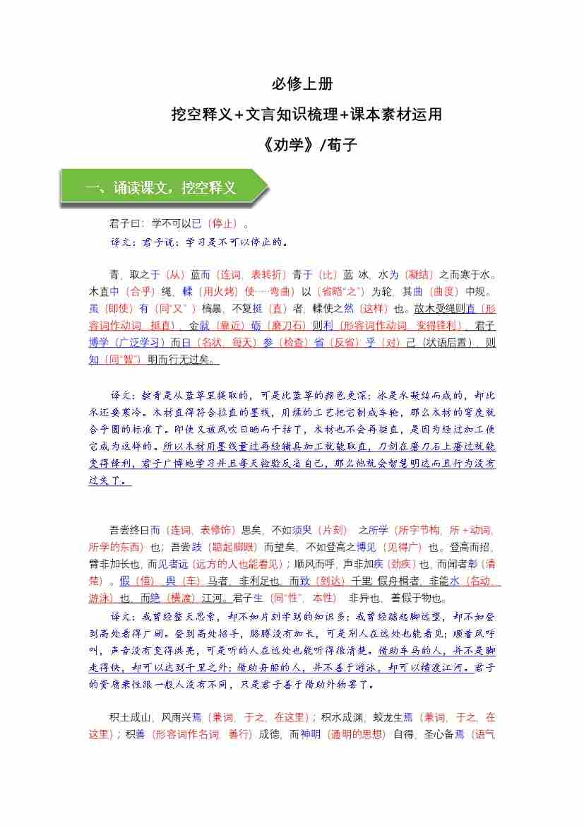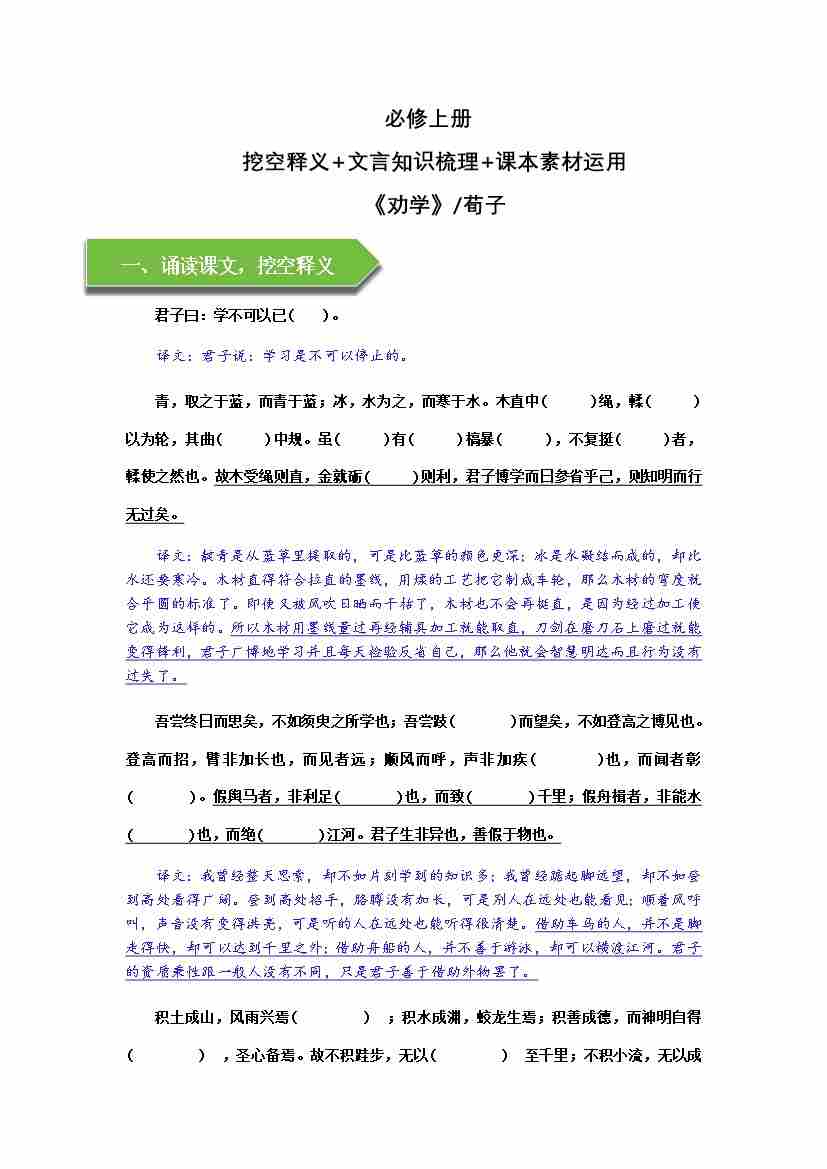 《劝学》文言知识梳理与写作取材(学生版)-8页