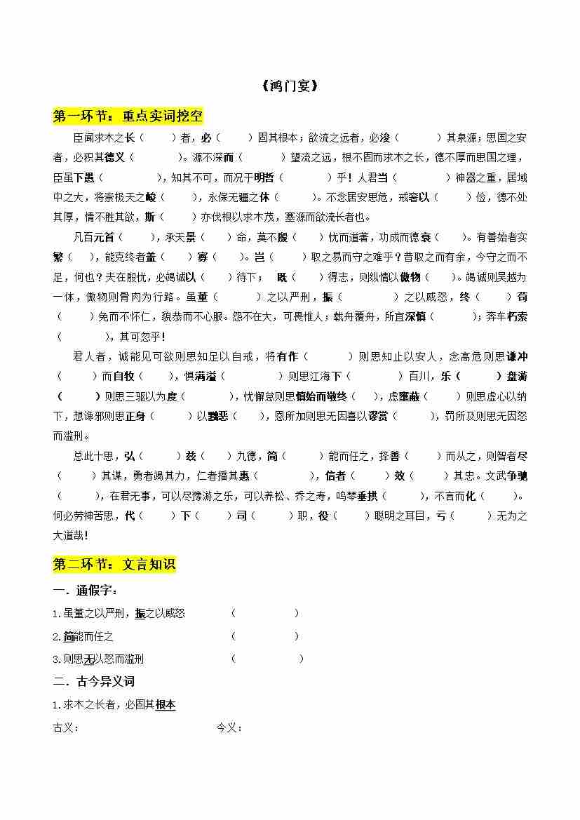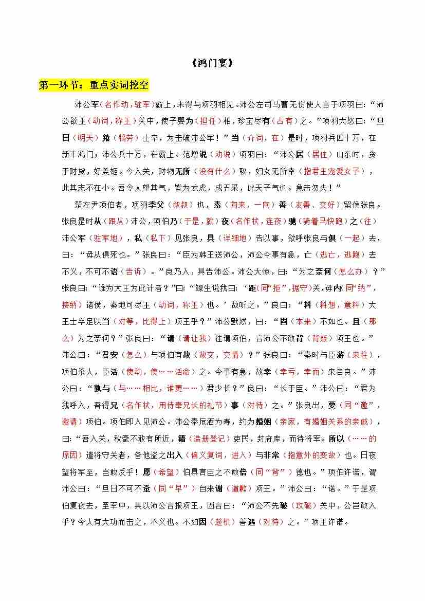 专题04 鸿门宴、谏逐客书(文言文挖空训练)(全国通用)(答案版)