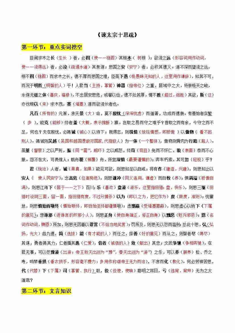 专题06 谏太宗十思疏、答司马谏议书(文言文挖空训练)(全国通用)(答案版)