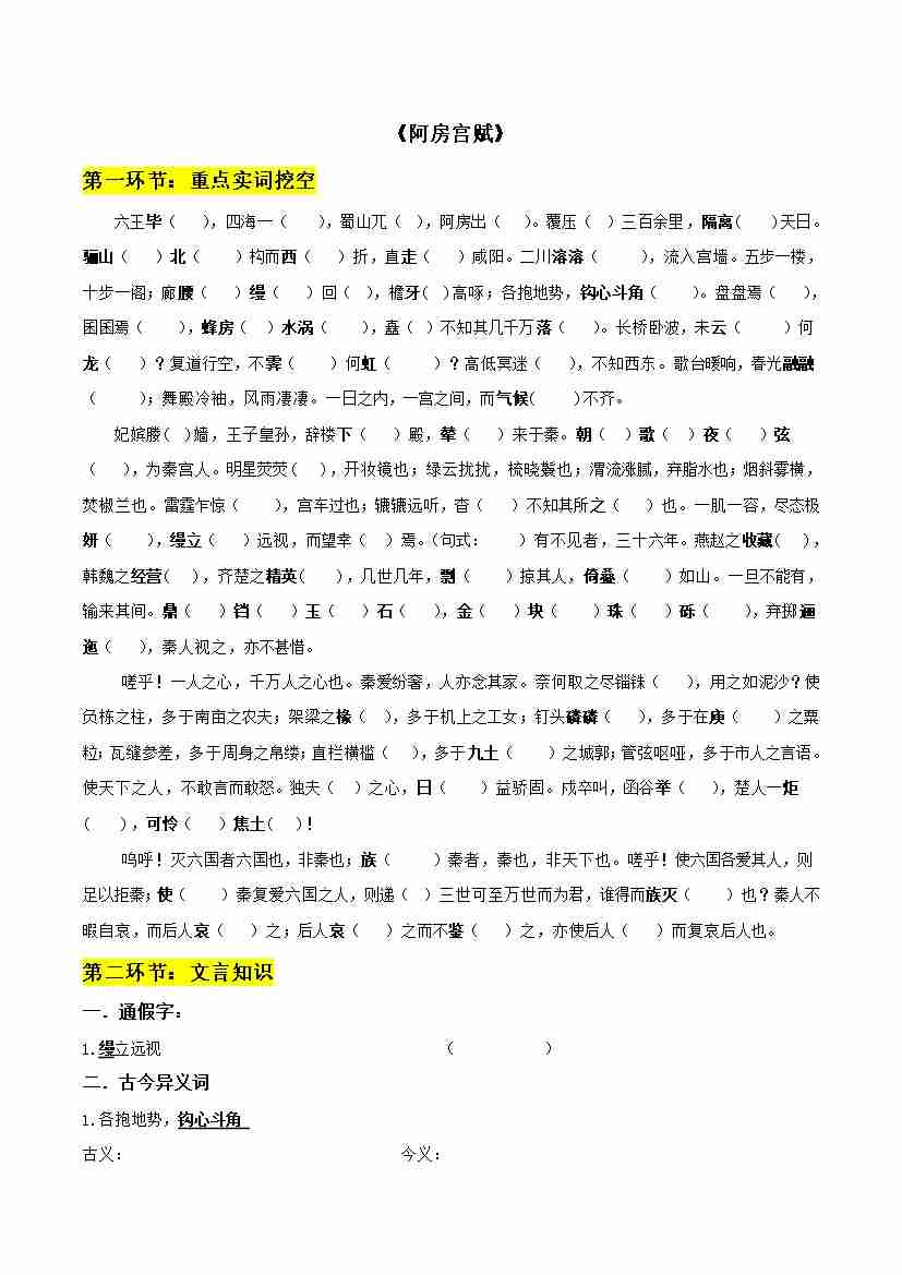 专题07 阿房宫赋、六国论(文言文挖空训练)(全国通用)(学生版)
