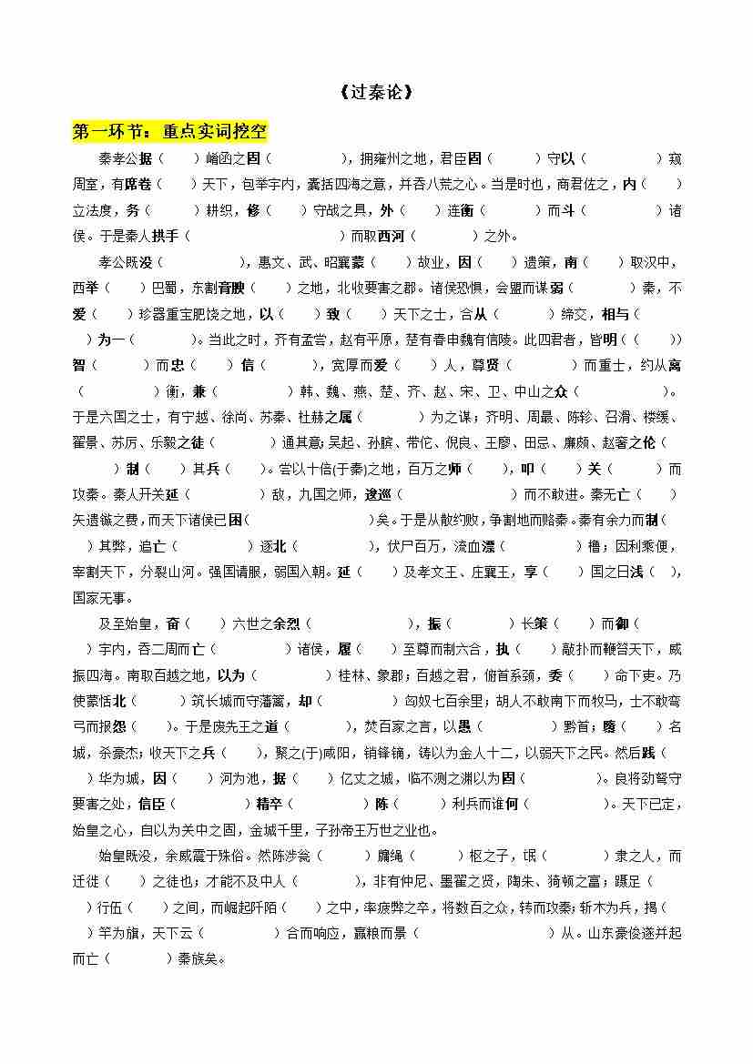 专题10 过秦论、五代史伶官传序(文言文挖空训练)(全国通用)(学生版)