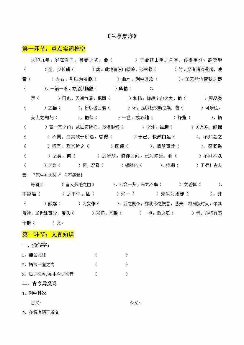 专题12 兰亭集序、种树郭橐驼传、石钟山记(文言文挖空训练)(全国通用)(学生版)