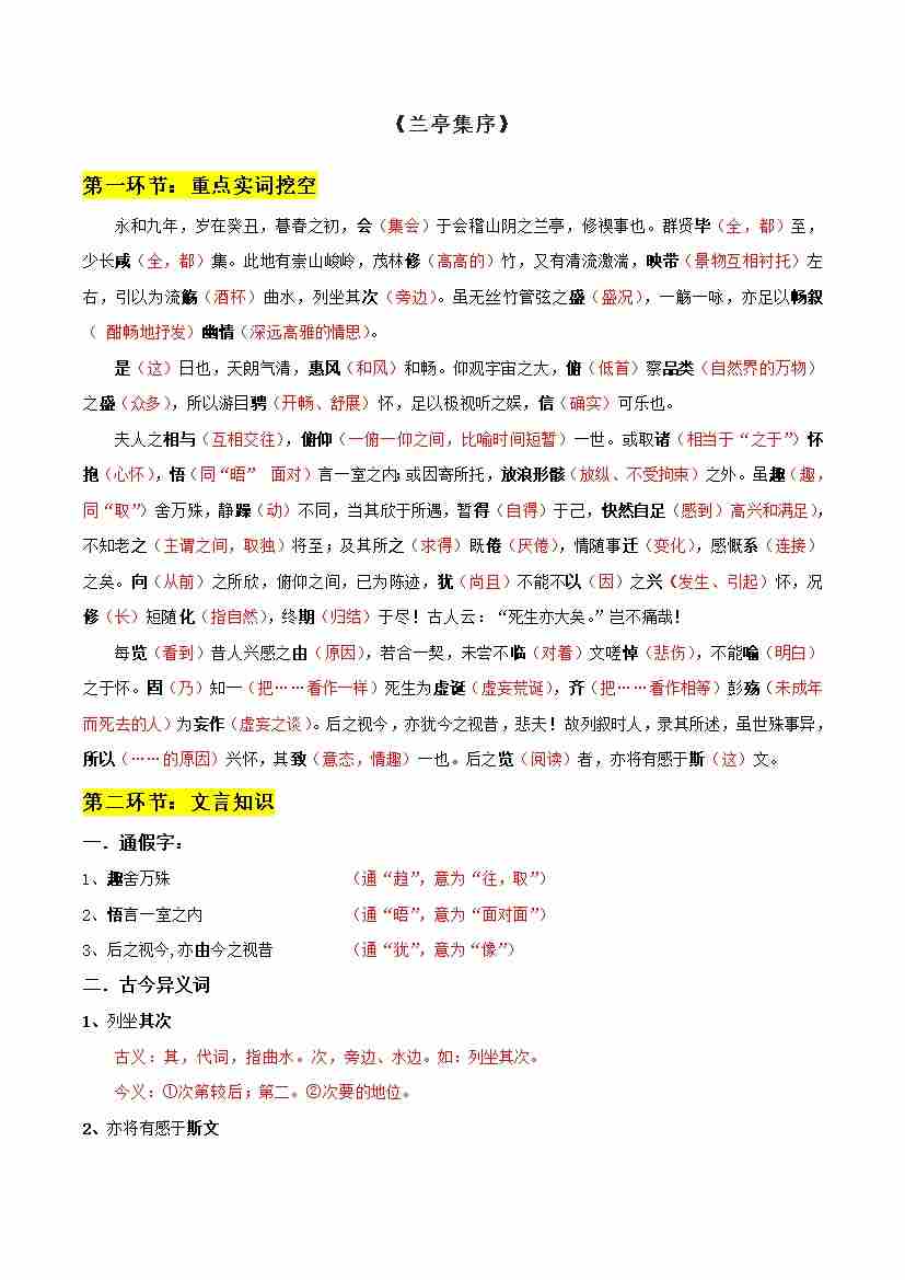 专题12 兰亭集序、种树郭橐驼传、石钟山记(文言文挖空训练)(全国通用)(答案版)
