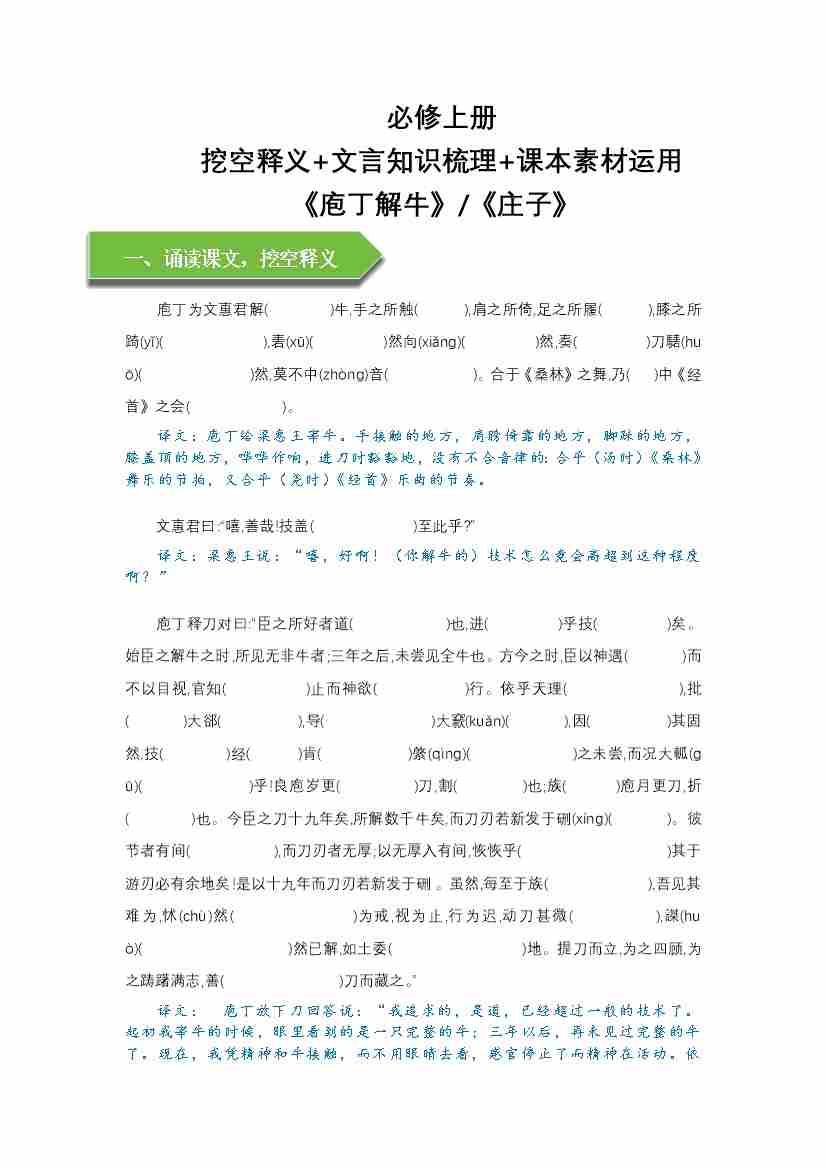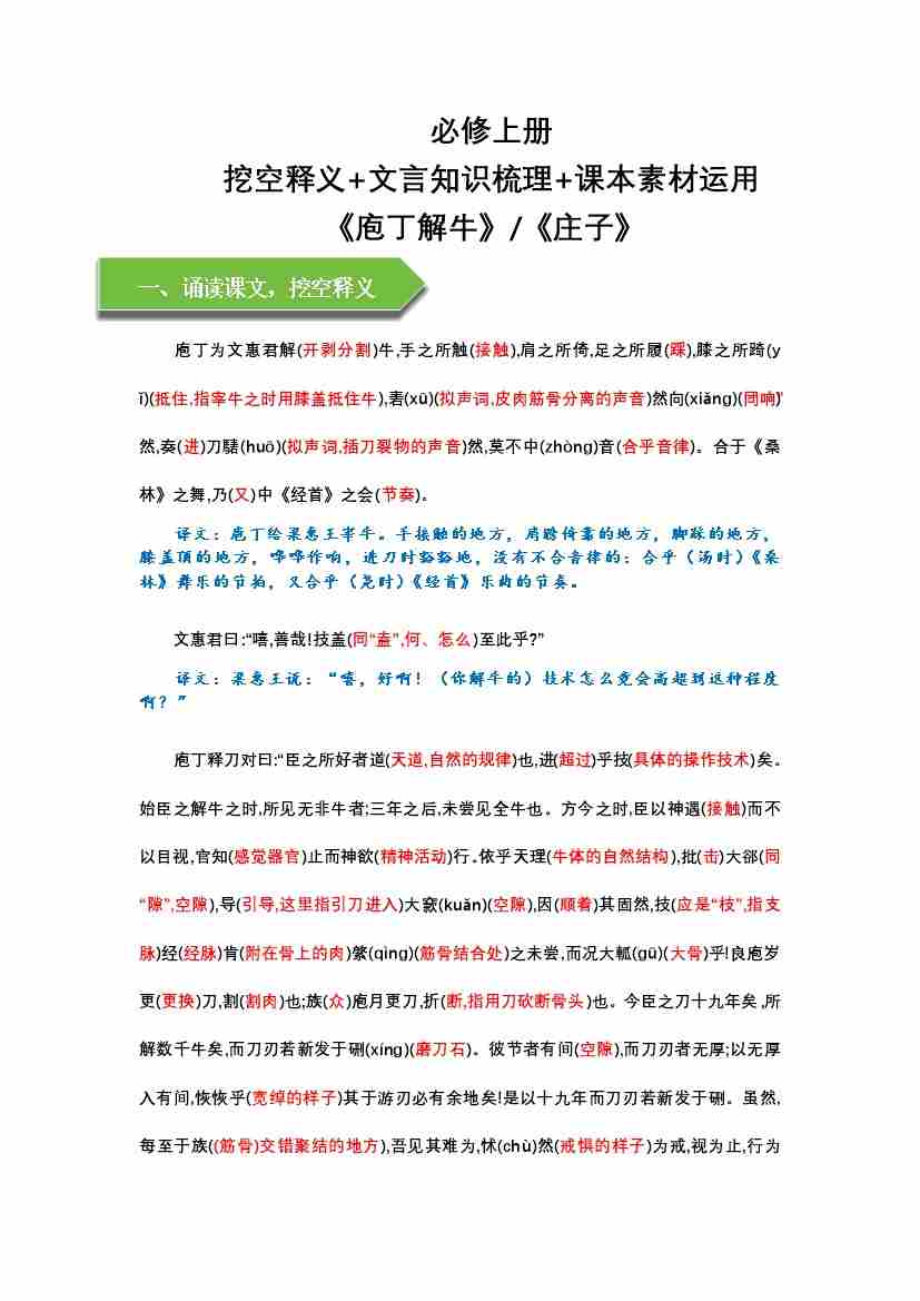 《庖丁解牛》文言知识梳理与写作取材(教师版)-11页