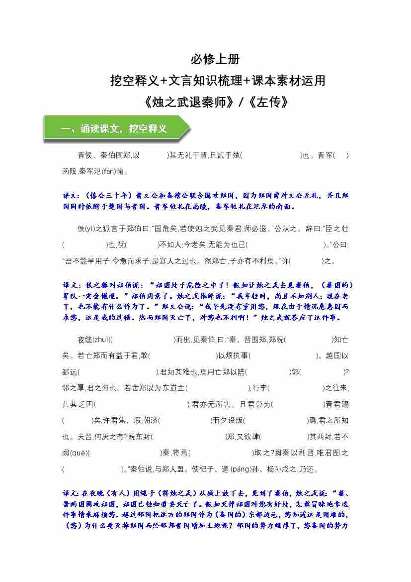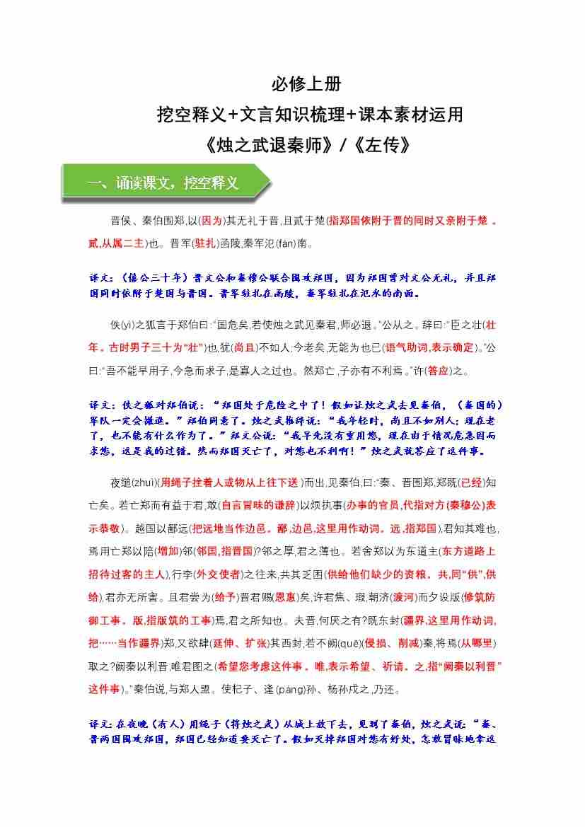 《烛之武退秦师》文言知识梳理与写作取材(学生版)-10页