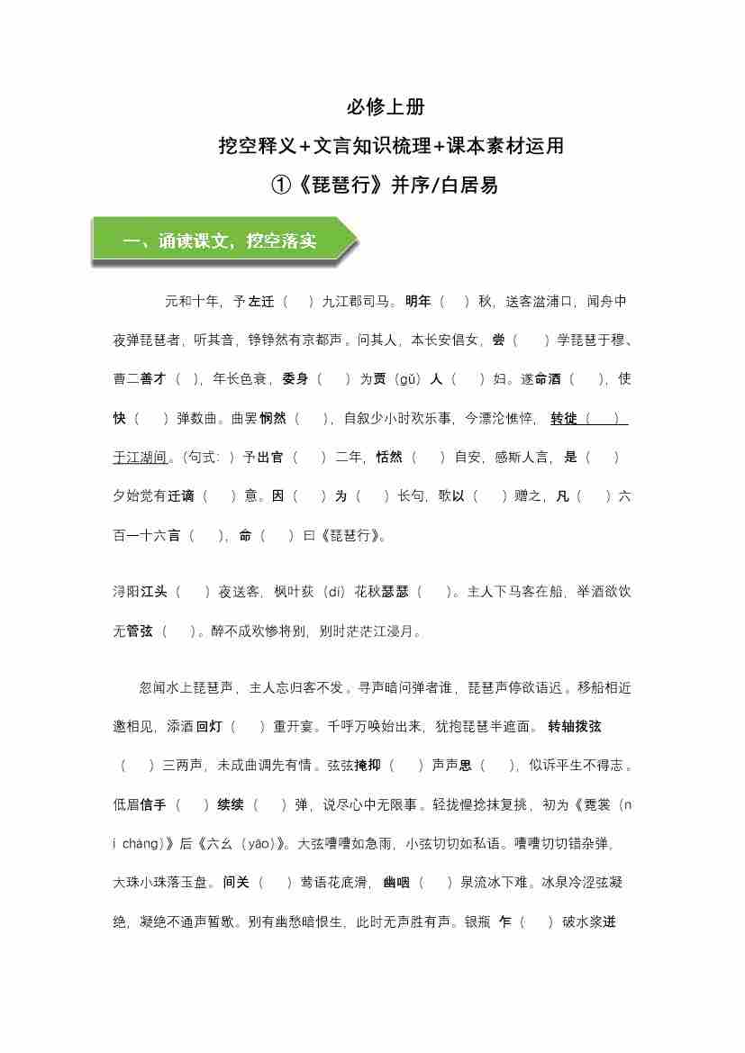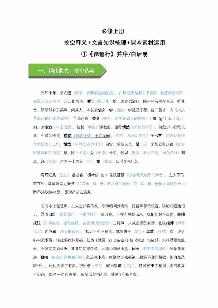 《琵琶行》文言知识梳理与写作取材(教师版) docx-9页
