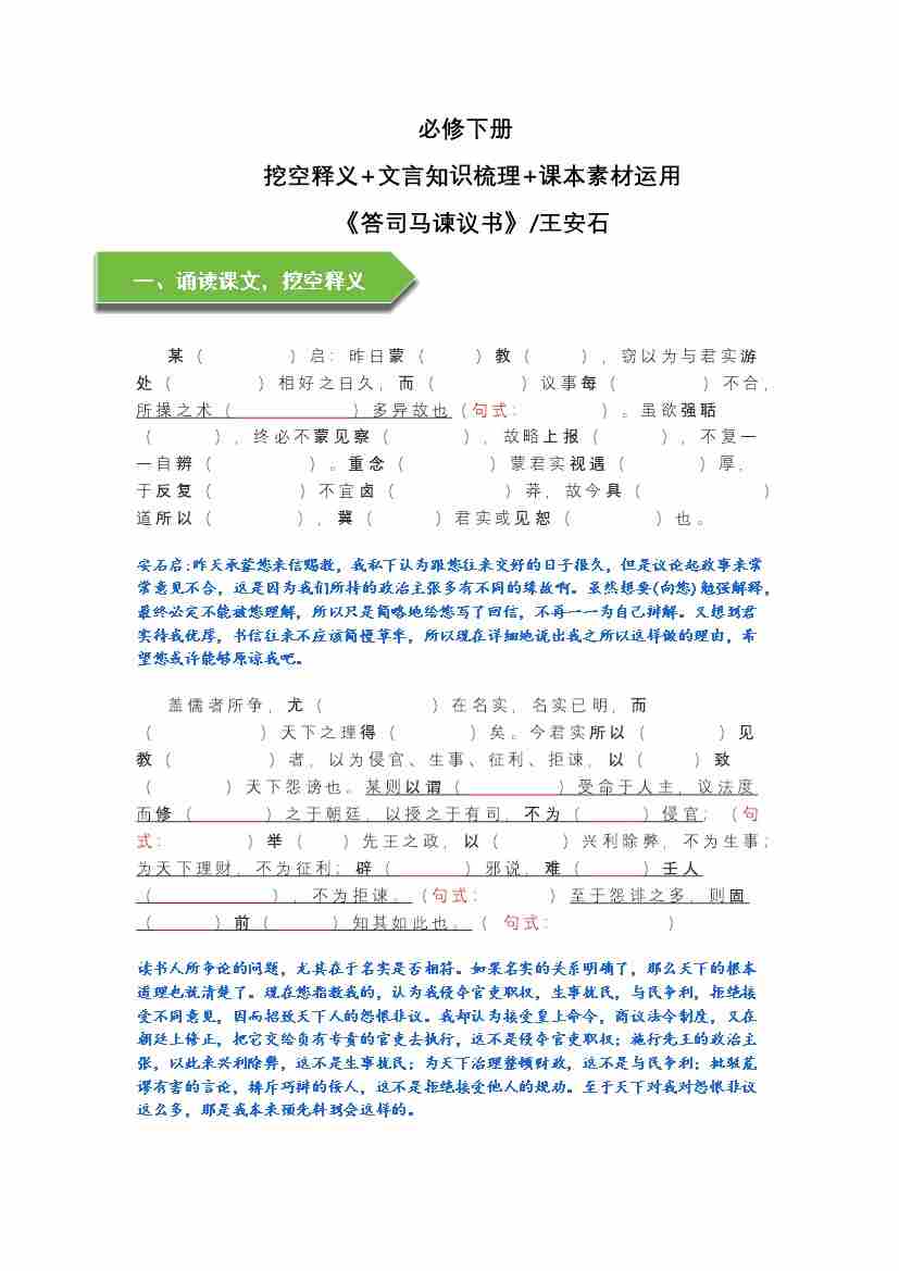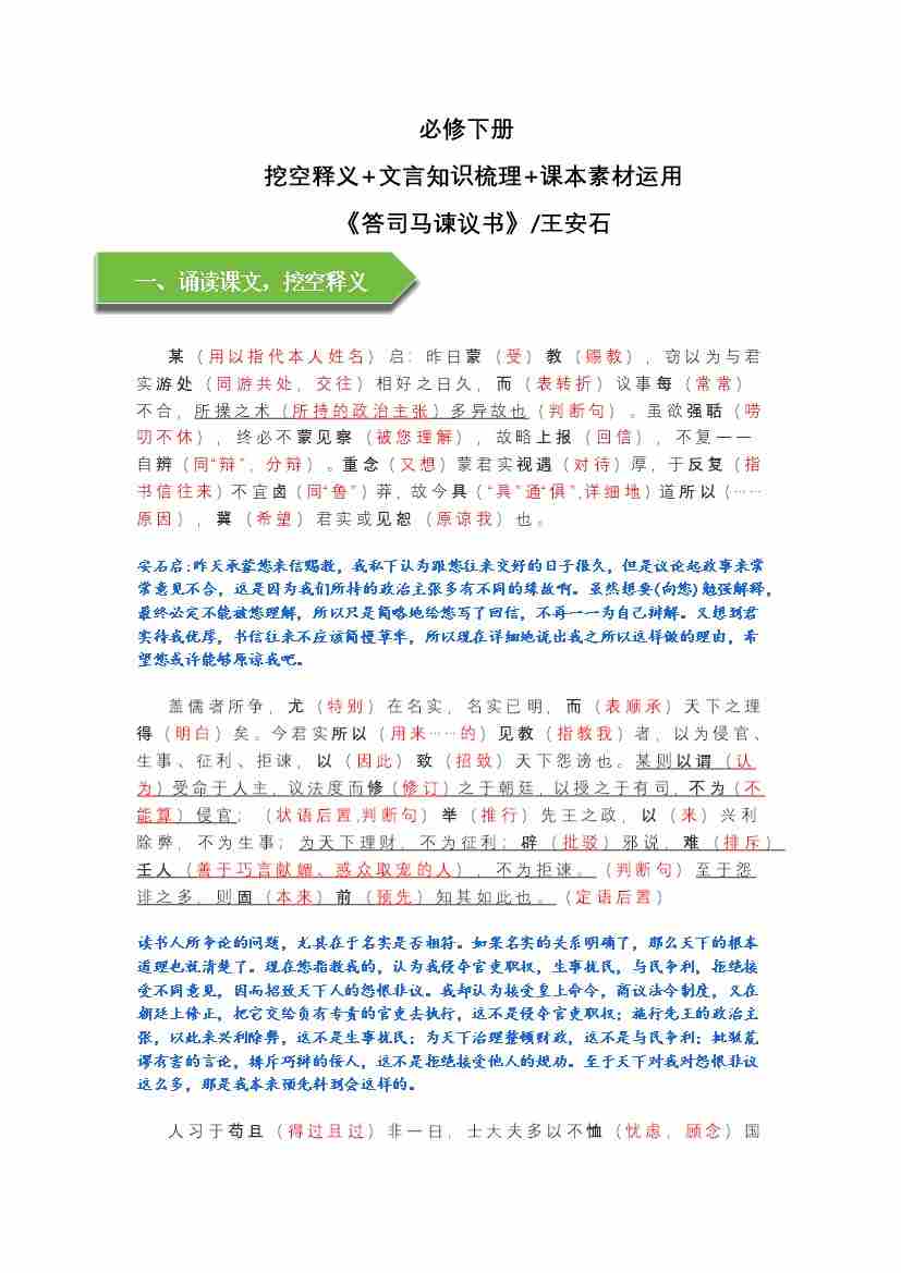 《答司马谏议书》文言知识梳理及写作取材(教师版)-11页