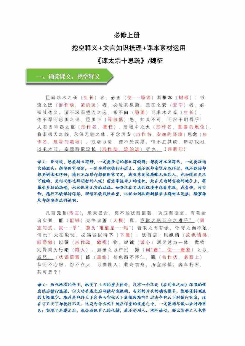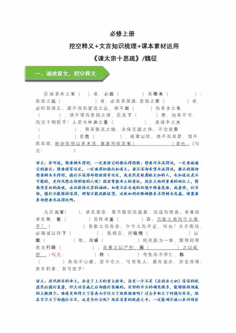 《谏太宗十思疏》文言知识梳理与写作取材(教师版)-14页