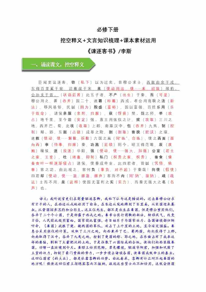 《谏逐客书》文言知识梳理与写作取材(教师版)-11页