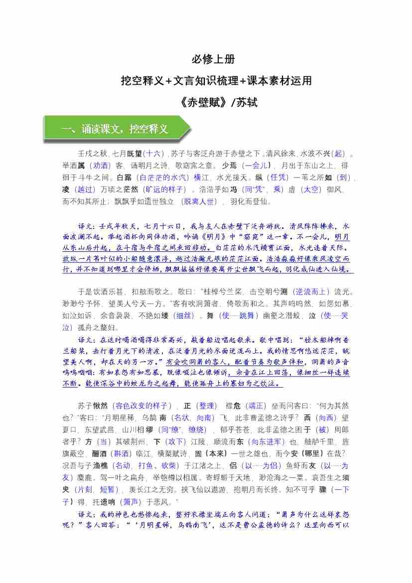 《赤壁赋》文言知识梳理及写作取材(教师版)-11页