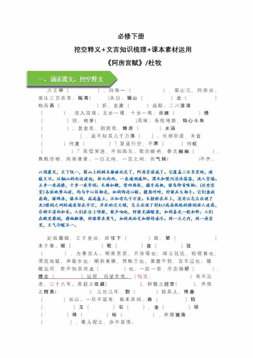 《阿房宫赋》文言知识梳理与写作取材(学生版)-13页