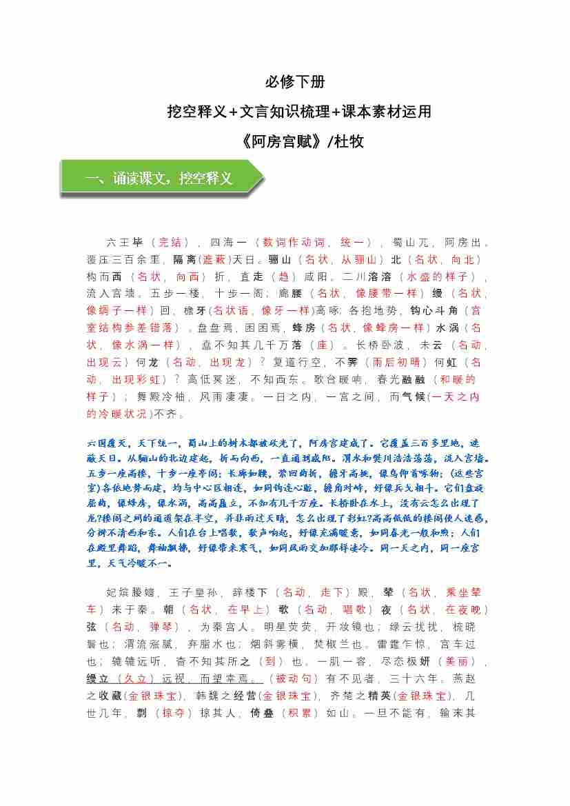 《阿房宫赋》文言知识梳理与写作取材(教师版)-14页