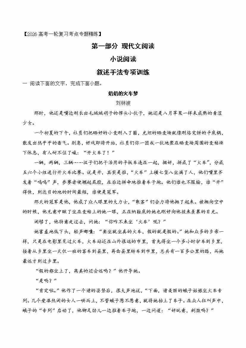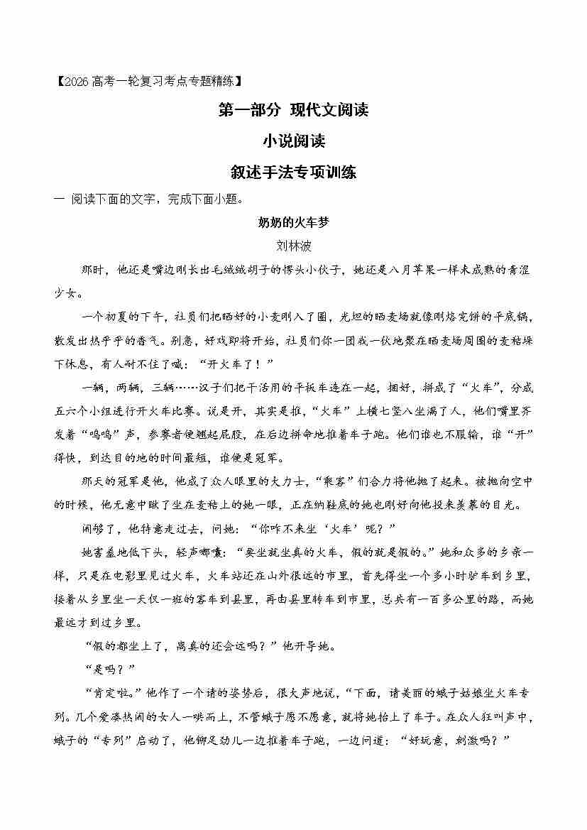 04 2026年高考小说阅读分析叙述手法专项训练(学生版)