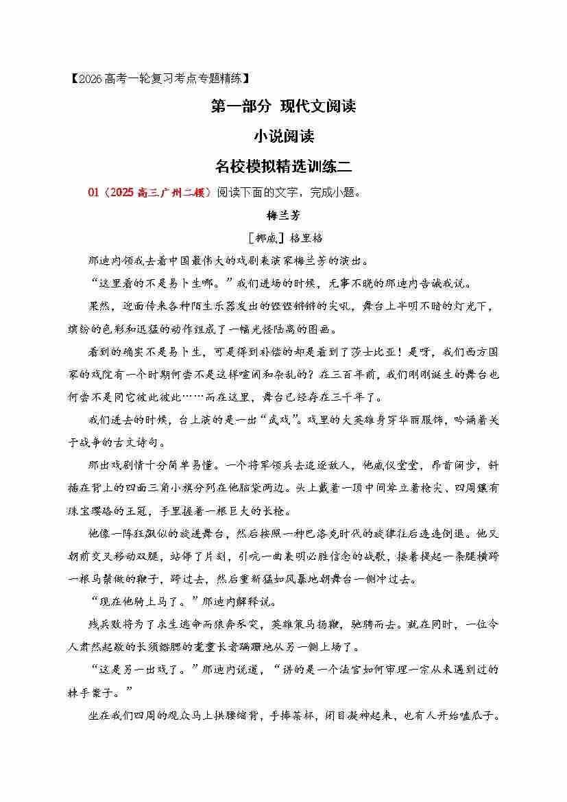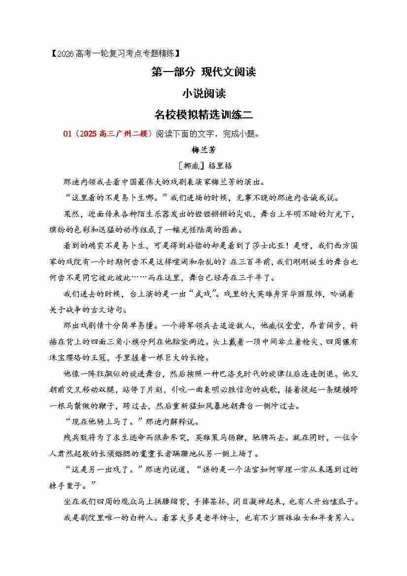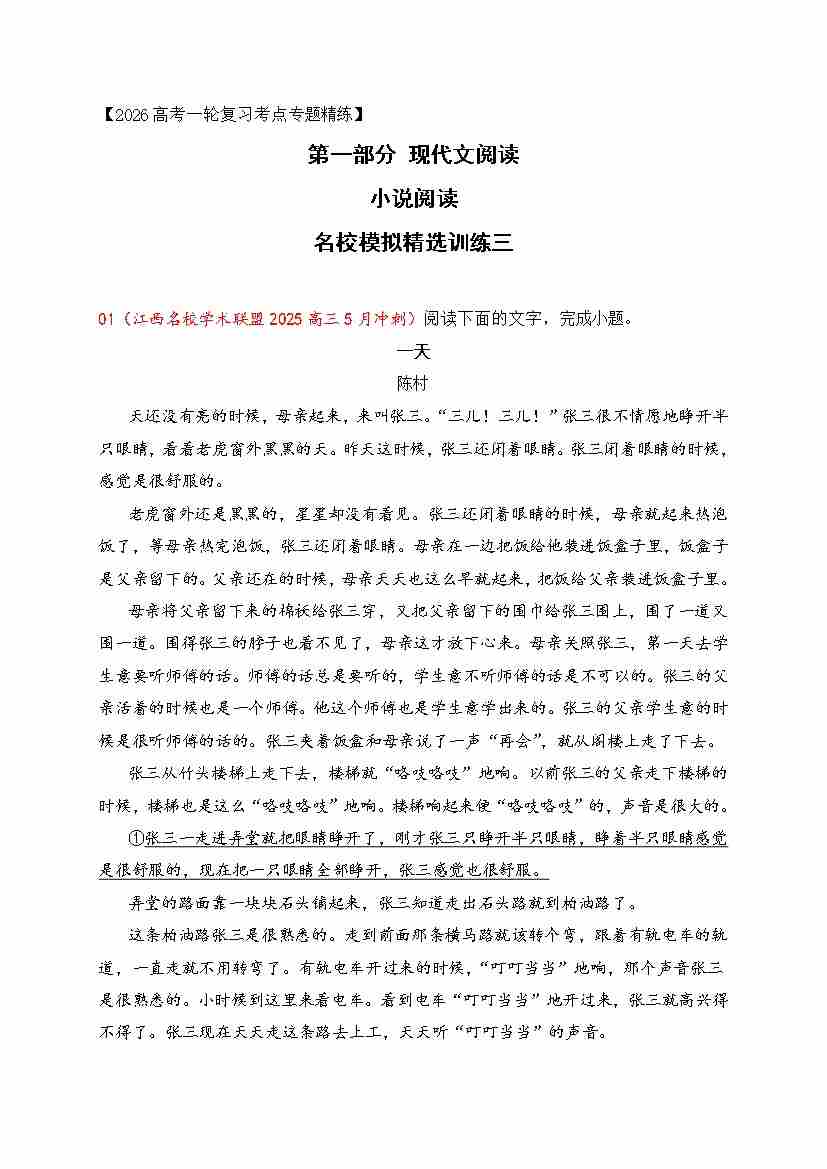03 2026年高考小说阅读分析情节结构专项训练(教师版)