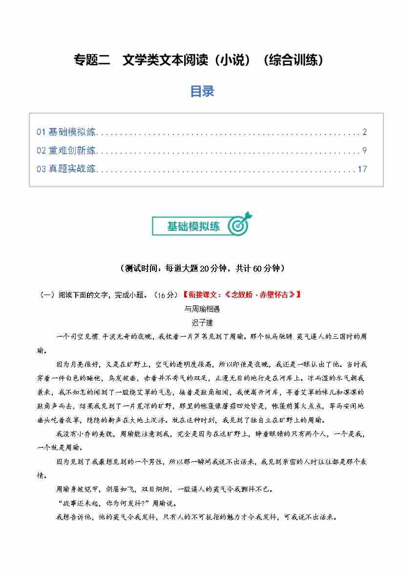 专题二 文学类文本阅读(小说)(综合训练)(全国通用)(训练版)