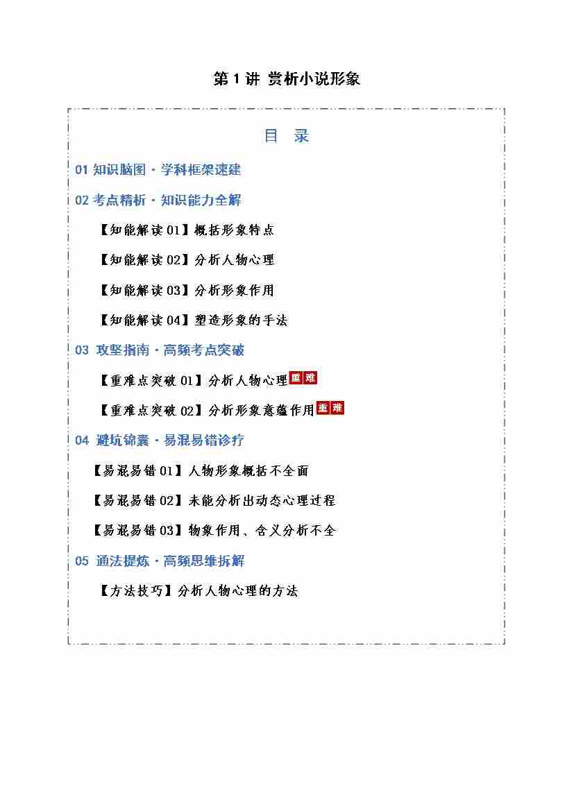 第01讲 赏析小说形象(知识清单)(全国通用)教师版