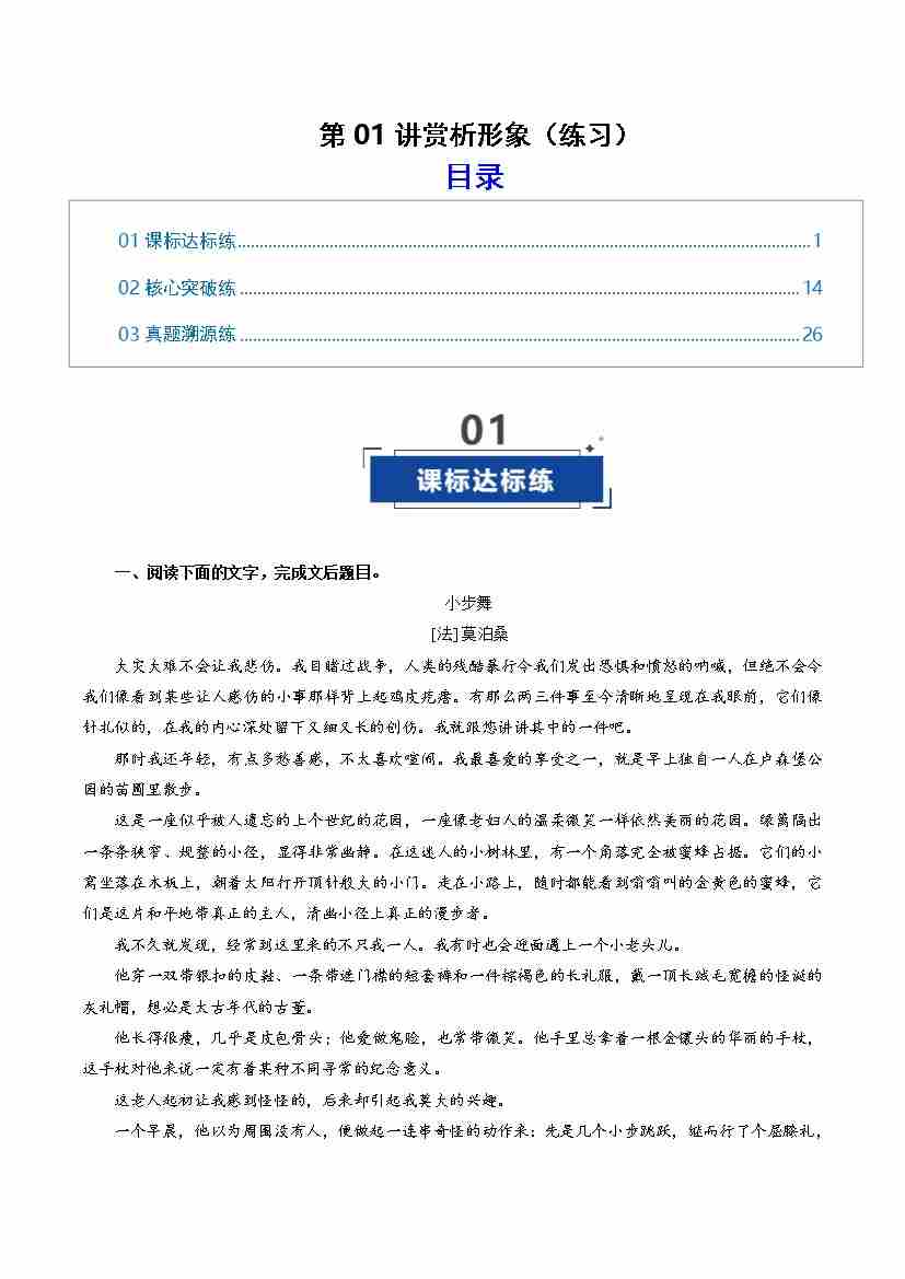 第01讲 赏析形象(专项训练)(学生版)