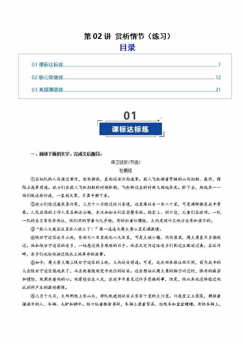 第02讲 赏析情节(专项训练)(学生版)