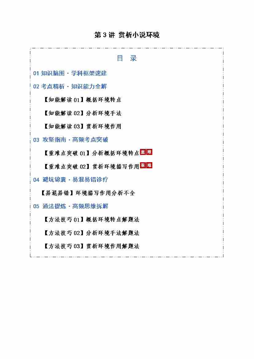 第03讲 赏析小说环境(知识清单)(全国通用)教师版