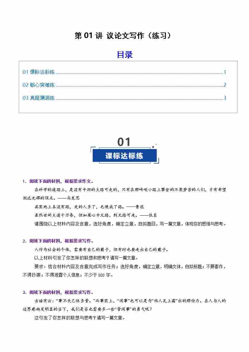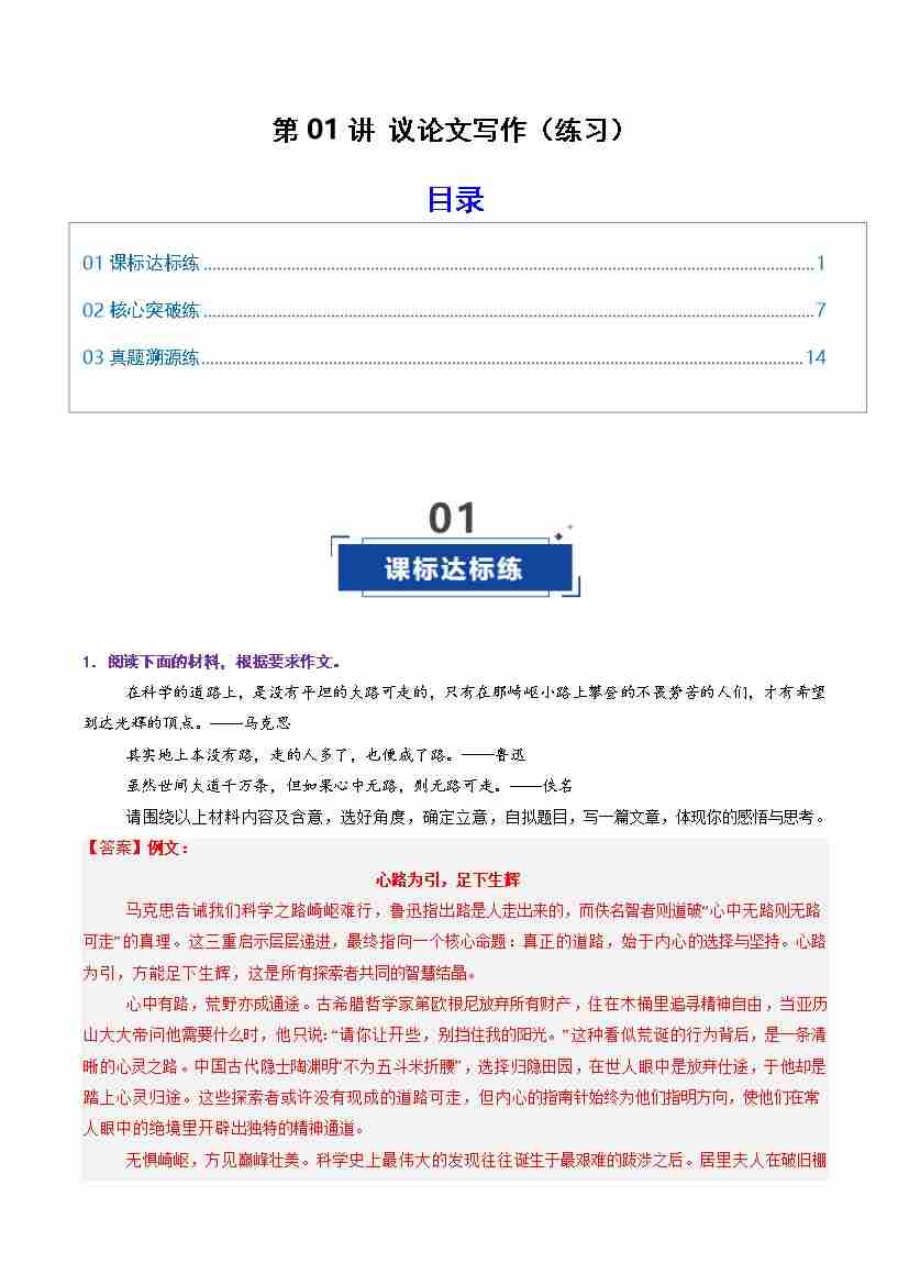 第01讲 议论文写作(专项训练)(全国通用)(学生版)
