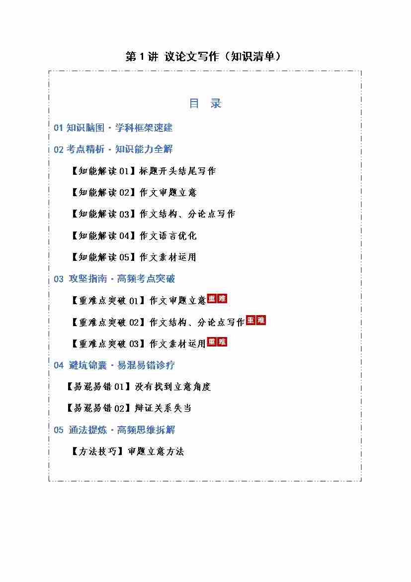 第01讲 议论文写作(知识清单)(全国通用)学生版