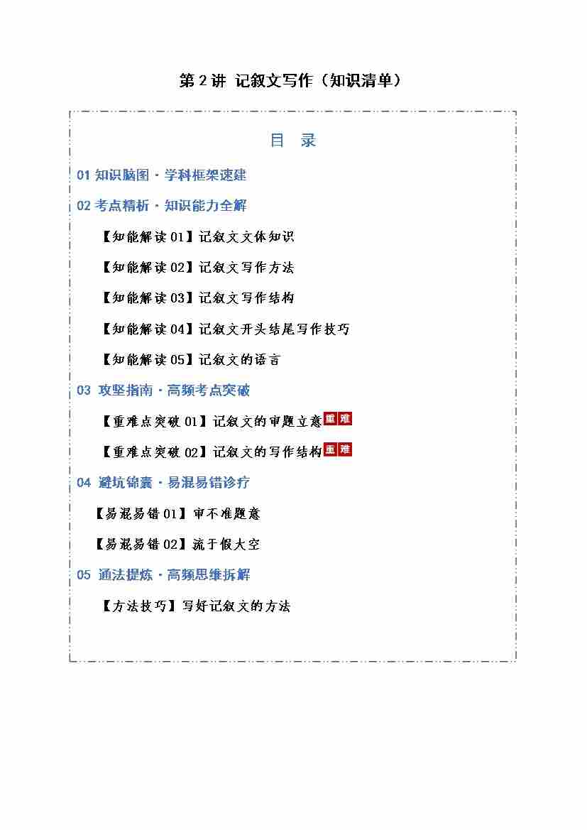 第02讲 记叙文写作(知识清单)(全国通用)学生版