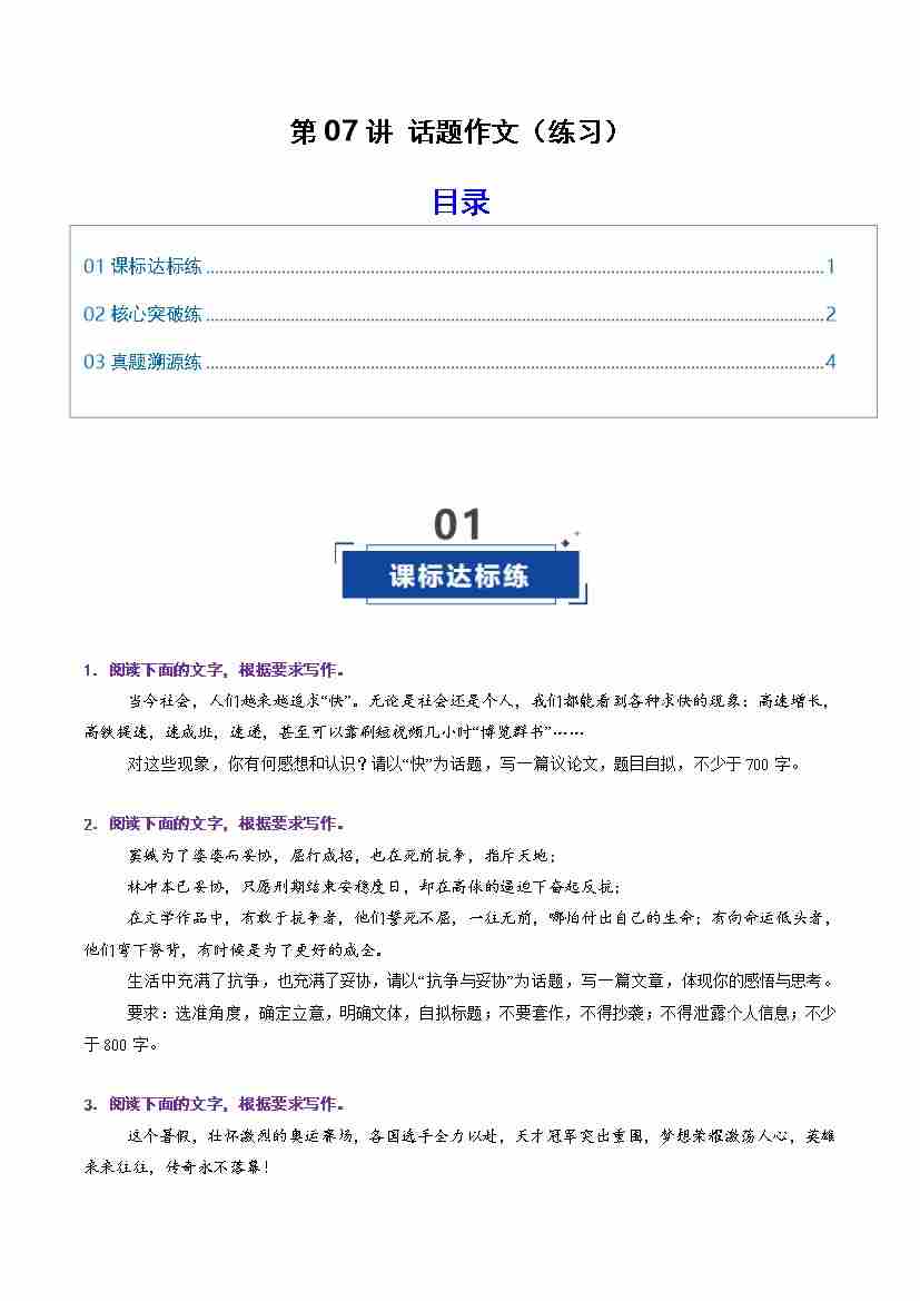 第07讲 话题作文(专项训练)(全国通用)(学生版)