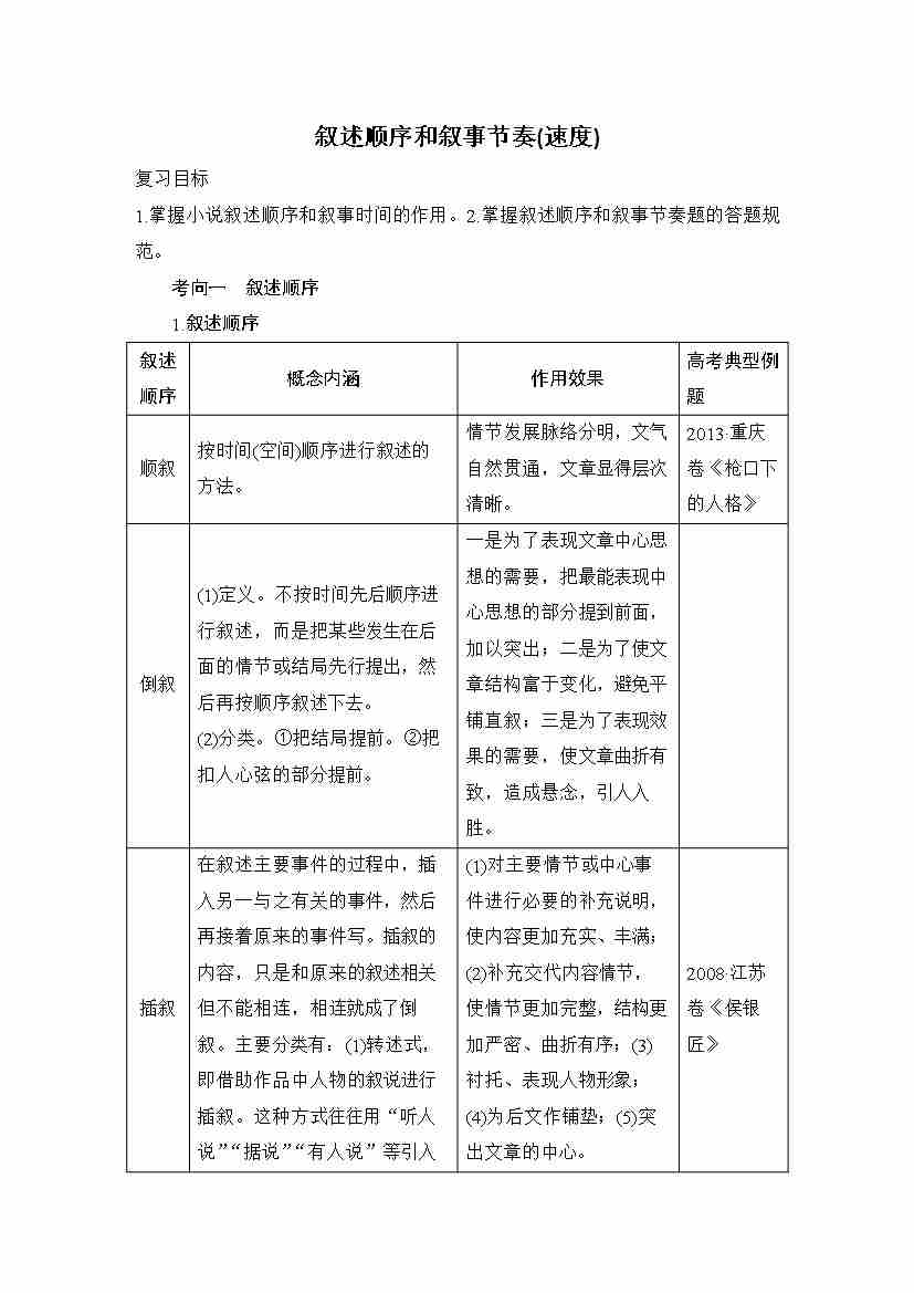 高三语文一轮复习小说学案:叙述顺序和叙事节奏(速度)