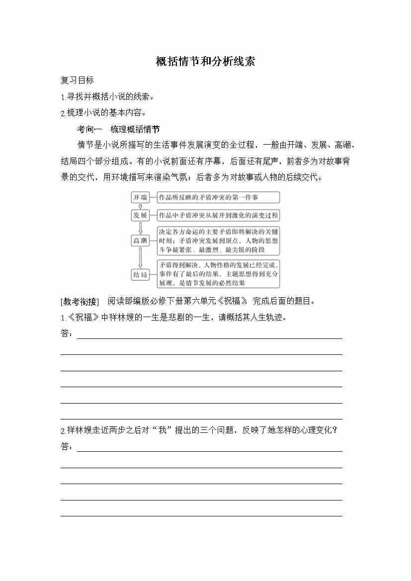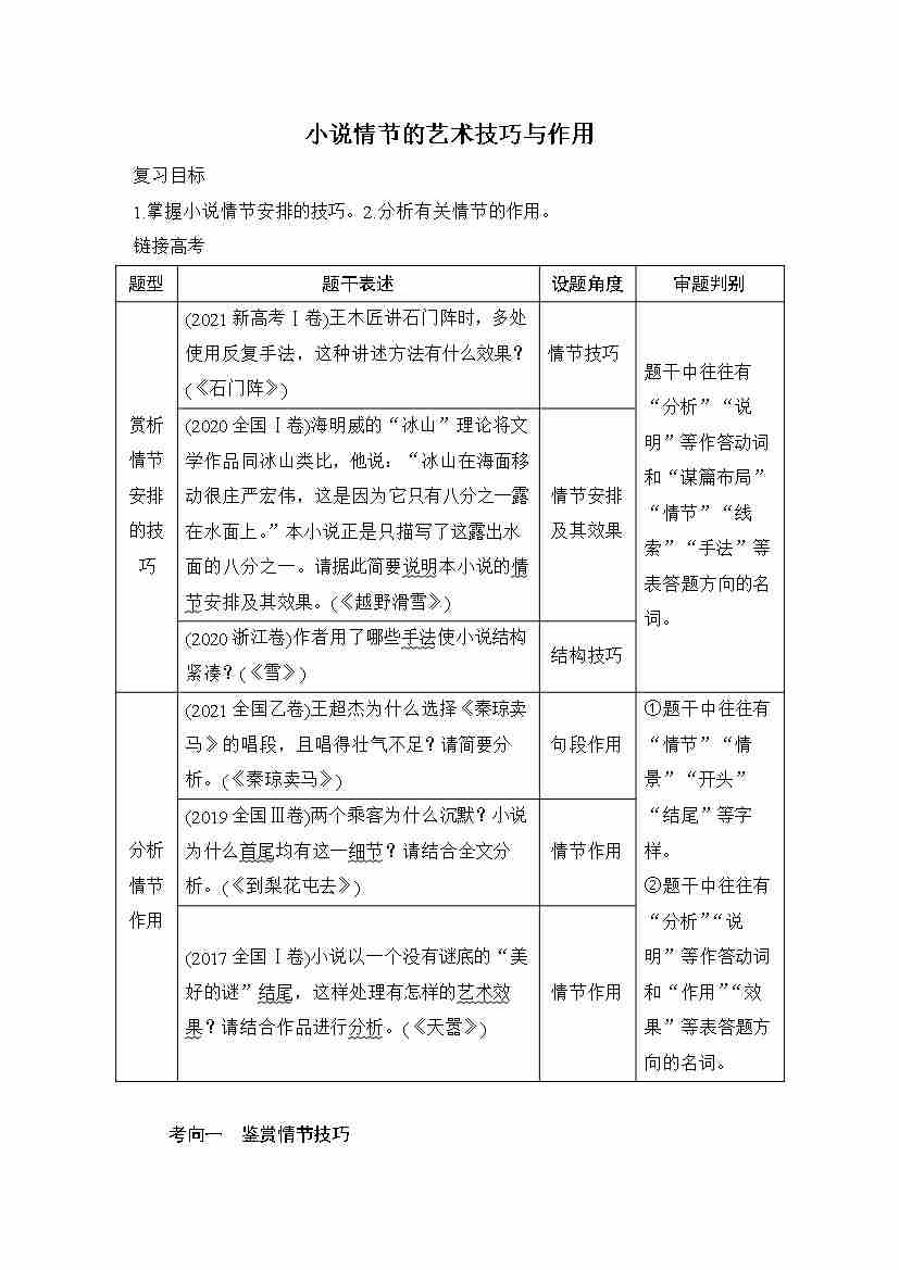 高三语文一轮复习小说学案:小说情节的艺术技巧与作用