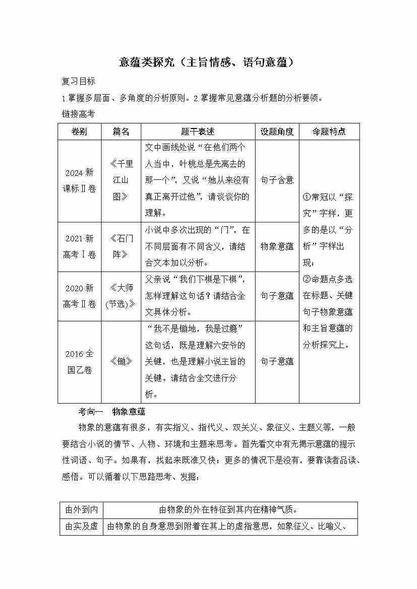 高三语文一轮复习小说学案:意蕴类探究(主旨情感、语句意蕴)