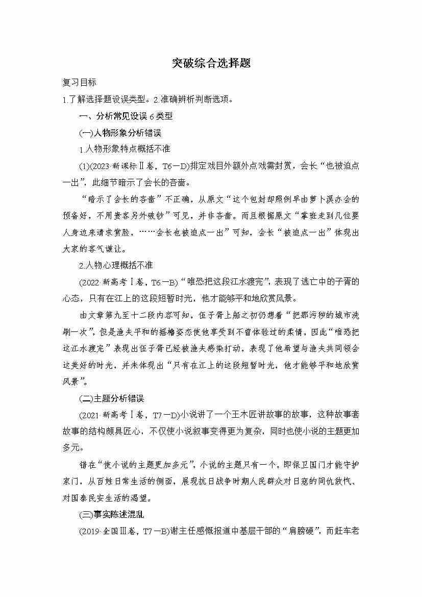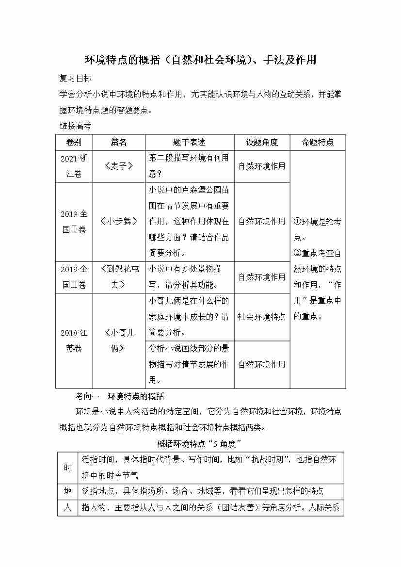 高三语文一轮复习小说学案:环境特点的概括(自然和社会环境)、手法及作用