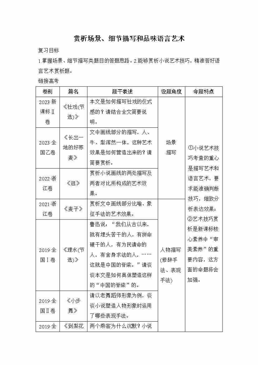 高三语文一轮复习小说学案:赏析场景、细节描写和品味语言艺术
