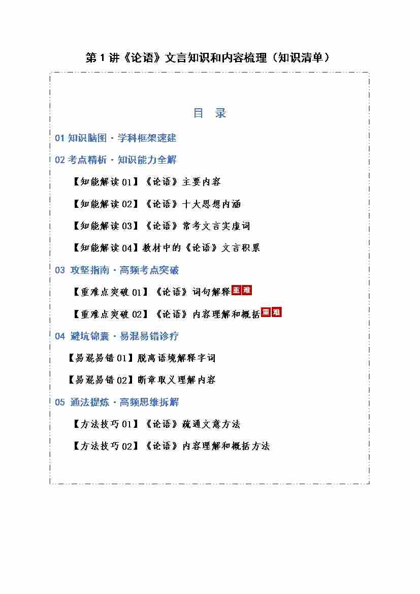 第01讲《论语》文言知识和内容梳理(知识清单)(全国通用)教师版