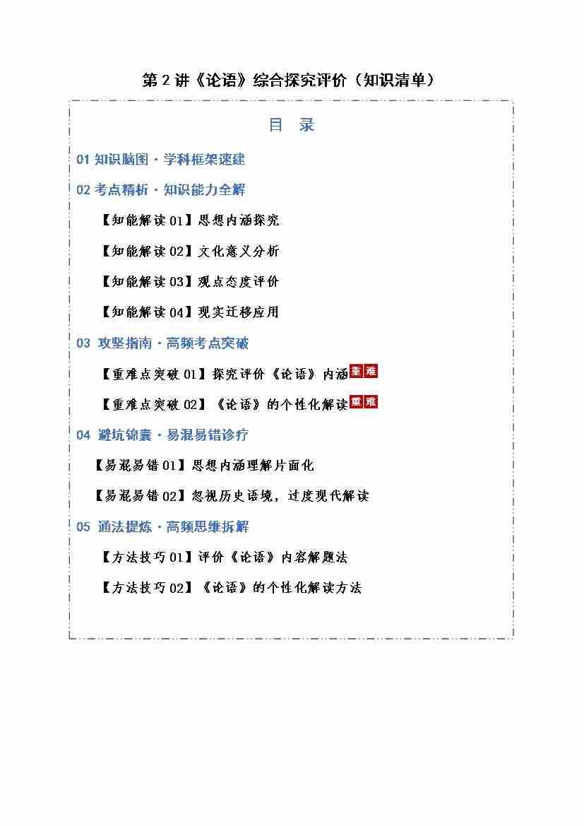 第02讲 《论语》综合探究评价(知识清单)(全国通用)学生版