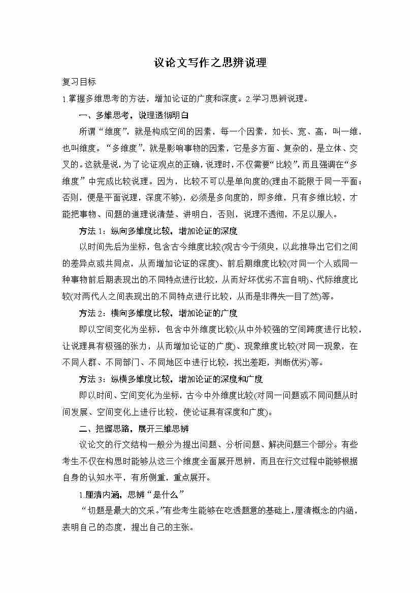 高三语文一轮复习写作学案:议论文写作之思辨说理