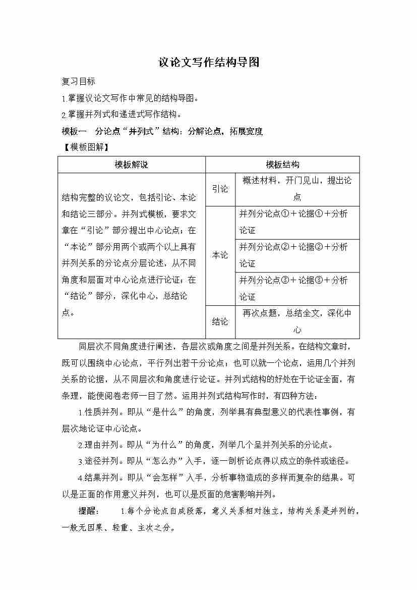 高三语文一轮复习写作学案:议论文写作结构导图