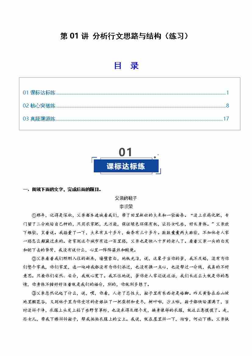 第01讲 分析散文思路和结构(专项训练)(全国通用)(学生版)