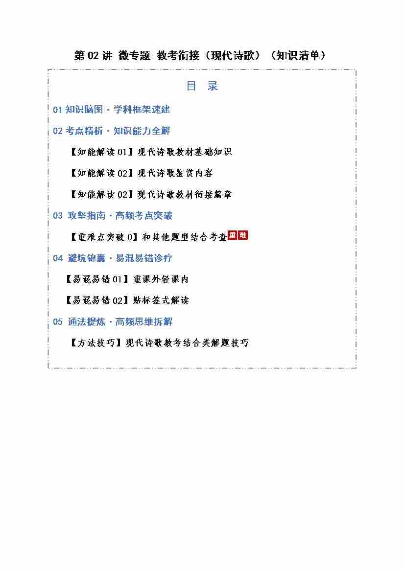 第02讲 微专题 教考衔接(现代诗歌)(知识清单)(全国通用)学生版